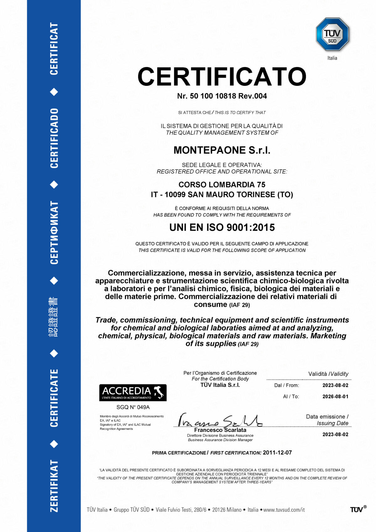 Scarica il certificato in formato PDF - Visualizza certificato